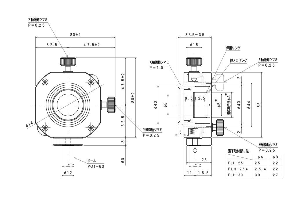微動方式(mm) Y, Zネジ P=0.25ネジ P=0.25ネジ P=0.25