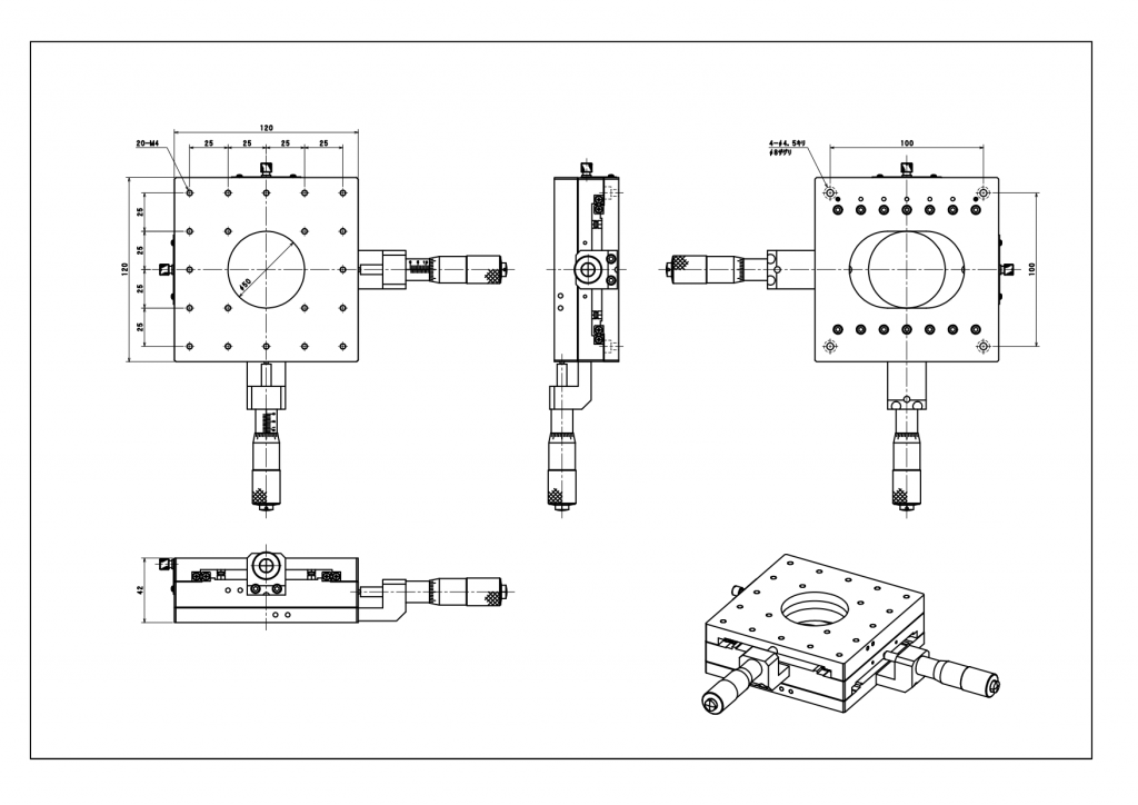 ・取付穴(上面) :1-φ50 中央(貫通穴)、20-M4 ピッチ25 □100位置