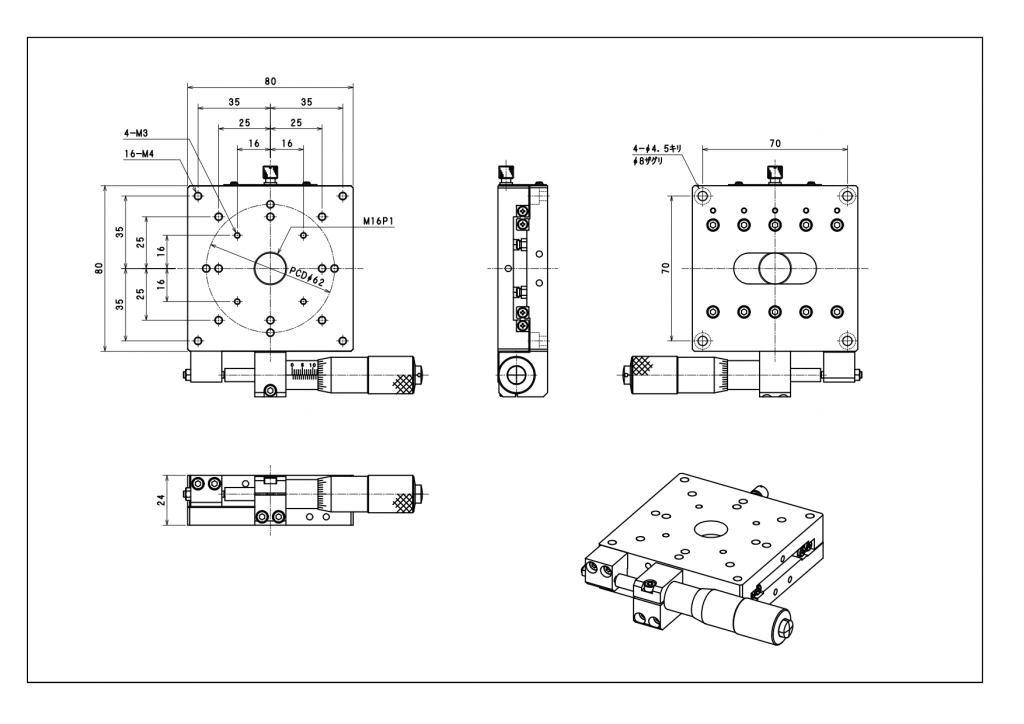 ・取付穴(上面) :1-M16 P1 中央、4-M3 □32位置、4-M4 PCD62位置、8-M4 ピッチ25 □50位置、4-M4 □70位置